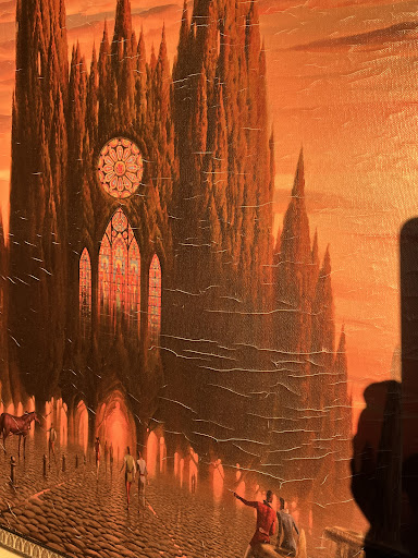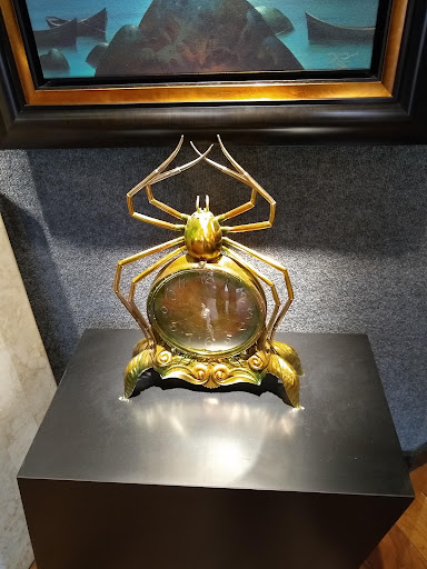I could only spend 4 hours in Laguna Beach and am grateful to the two staff members who answered questions and allowed me to browse the gallery undisturbed all that time. It was still not enough time to adequately digest all the paintings, giant murals, sculptures, and jewelry. With a live viewing, I was able to pick up details (sometimes entire objects) that I missed even after multiple examinations over the Internet.