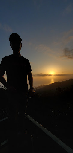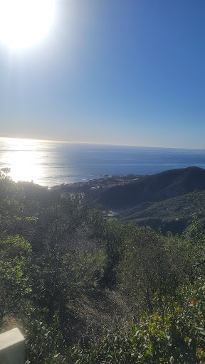 Very affluent area high above laguna beech about a 3 mile uphill drive to the peak off pacific coast hwy. Aliso peak accessible from a small residential street and if you are discreet and respectful this spot may continue to be accessible for night hikes down the 100 yard trail from the street parking which also has several public park overlooks but you can only see catalina island by taking the trail to the right just before the cul de sac where there is a guard station watching for the safety of this gated community's residents. Catalina harbor lights visible in the middle between the gleam of lightto left on ocean surface (which was bright for 1/2 hr b4 suddenly disappearimng while I turned my head to send txt of this photo) Light to right was a slow moving ship which finally pulled into the islands harbor. The gleam on ocean was a mystery, the moon was no where near that light. I spent two hours up there and it felt like 30 minutes. Look fwd to seeing Catalina Island from...