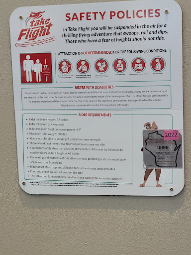 Read moreDo not go on this ride if you have acrophobia!! I knew it was a flight simulation but oh my goodness!! I had no idea how high you actually are on this thing! Its at least two stories up with a dome screen in front of you and youâre in these seats that shoot out closer to the screen with little to no warning and nothing under your feet, and just a seatbelt for protection. The seats then bounce and kick around leaning forward and back like youâre flying but its so jarring and was so hard to concentrate on what was going on because I was too busy holding myself up and water squirts you in the face which didnât help my anxiety. I tried so hard to just close my eyes and wait it out but I couldnât, I panicked and screamed for help. Luckily they heard me screaming and turned it off which felt like it lasted hours because I was so panicked. They were nice and gave our money back but Iâll never do that again. It was altogether an extremely frightening and traumatic experience. I repeat, if you or your kids have a fear of heights DO...