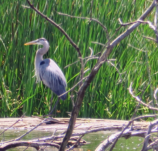 Always a great place for a nature hike. Today's sightings include: a beer busy building, a white egret, a great blue heron on a nest, feeding it's very ready to fledged offspring, numerous goldfinches, a northern leopard forg, several turtles, and a comorant. Heard a kingfisher but never saw it. All in 45...