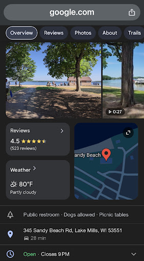 Sandy Beach is a great local beach to visit. The water is wonderful and clean and there is plenty of shaded areas if you need a break from the sun. Grills are available if you are able to snag one. Nice size shelter for get together. They have a variety of things to do: sand volleyball, paddle board rental, kayak rental. If you love Devil's Lake but dont want to drive the distance or have to get there super early to get a spot, Sandy Lake is about 15-20 minutes from Madison and just as beautiful. Parking does fill up on really nice days and there is additional road parking or there is another parking area further away by their park that isn't a terrible walk but if you have stuff to transport you will want extra hands or a wagon to get everything...