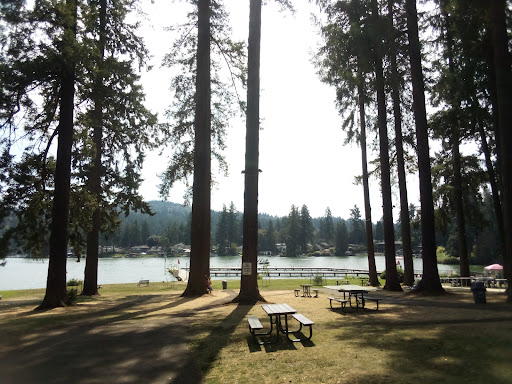 We appreciate the grassy area to setup chairs or towels under the shade of the Douglas fir trees. There are about 8 picnic tables and a couple benches. There is a play structure (best for kids 8 and under), bathrooms, 3 basketball hoops with a small paved area, a couple old bad mitten nets, garbage and recycle bins, and a place to purchase snack, slushies, candy, and popsicles (card accepted). No alcohol is permitted.