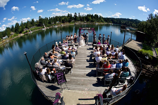 What a beautiful venue! We had a great time at our friend's wedding this Sunday. Plenty of convenient parking, an elevator near the staircase, clean bathrooms up and downstairs, gorgeous river views all along the balconies, walkways, park accesses and even from inside the reception area from the large bay windows that line the entire length of the room. The coordinator was friendly and helpful. I saw the photographer got what looked like will be some great shots and heard that he often works with this venue which may be why he was so familiar with with the area, natural spaces, lighting, was able to get the spontaneous shots from harder to capture kids (this bride now has 8 all together!) This was one of those weddings where the dance floor was being used the entire time, great music, so much fun! I would just highly recommend this place to anyone looking around Lake Oswego, Oregon area. We just really enjoyed ourselves! I only took one snap with my cellphone so not much to share until the bride gets her photos, this is off the back balcony overlooking the river as it got dark. Not much...