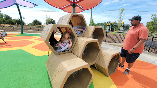 Read moreGreat park woth some shade provided by the giant flower structures. Circular track around a grass field is good for kids to run or ride bikes. Water fountains and a bike air/repair station is a nice feature. Adult workout areas are a cool feature but a bit of a gimmick as they dont function well enough to...