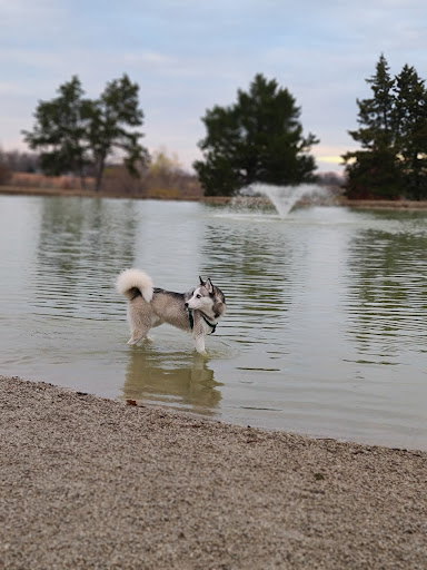 Huge pond swim area that both my dogs love to play in. Very expanse grassy area, benches around the water so you can sit. There’s a dock if your dogs like to run off of those