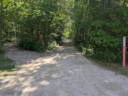 Great place to hike in the area. They have a lot of options for trails to take and they all loop around, so you can mix and match. It's pretty flat with some small hills throughout. We were able to push a stroller pretty easily on most trails especially the wide flat gravel trail. There is a covered pavilion here with picnic tables, a fireplace, and string lights. It's really nice. They have a bike rack, bike pump, and bike repair tools. You can use the trails year round for different sports. Hiking, biking, running, cross country skiing. You are required to have a Recreation Passport to park here. If you don't have one you can do a self registration and pay...