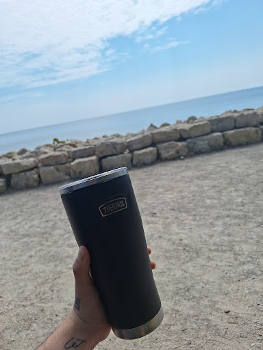 Looking south, it's better. There's a chest high colorfully decorated wall next to the playground (mosaic) and some low bushes, trees and minimal landscaping next to the mansion/restaurant. The view of the lake is awesome and wide and the overall feel of the park/restaurant is hip and pleasant. Unfortunately, there's a single tall light pole in the middle of it all that ruins the cleanish view.