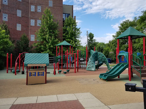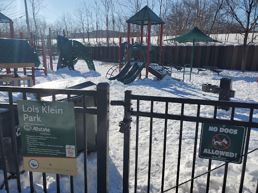 Nice variety of play structures for big and small kids, plus a set of swings and a play house. Also has several sets of benches for adults, and a grassy area to play on away from the other equipment. It is at a busy intersection and has two separate gates, so attention must be paid at all times to where kids are in and around the park. It's also right on a busy street and next to a busy Metra line so it gets noisy from the passing trains every 5-10 minutes...