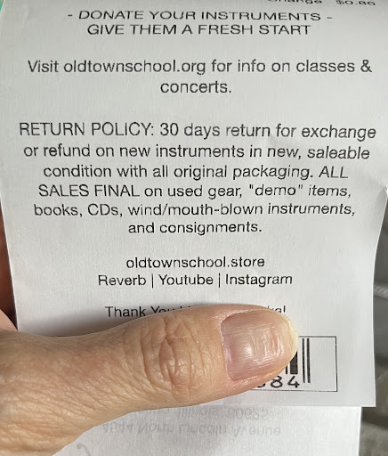 Read moreI went to the Old Town School of Folk Music to register for guitar lessons. Did I mention that the most I know about guitars is how to spell guitar? The staff at registration was very kind and knowledgeable. They read every instructor's bio to me and help me select the instructor I thought would be the best fit for me, at the best time for me. And the guys who work in the store were very friendly and helpful and answer all of my many questions. I ended up buying a digital guitar tuner and several picks. I love this place. Can't wait for classes to begin. I'll be happy if I can learn to play Happy Birthday and Heart of the Matter. I'm a simple person, with simple goals.