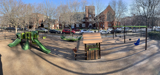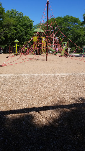 This large playground is tucked away on a quiet side street and contains an area for younger children, an area for older children, and a gentle spray water feature. The area for smaller children includes toddler swings, a four person see-saw, a clubhouse, and a small play structure. The area for older children includes a much larger play structure with a long, curved tube slide. There is also a large climbing net, a spinning feature, and the standard set of swings. The water feature is on during the summer months and offers a gentle mist. The surface is soft rubber and there are few benches and grassy areas. This playground is definitely worth checking out if you are...