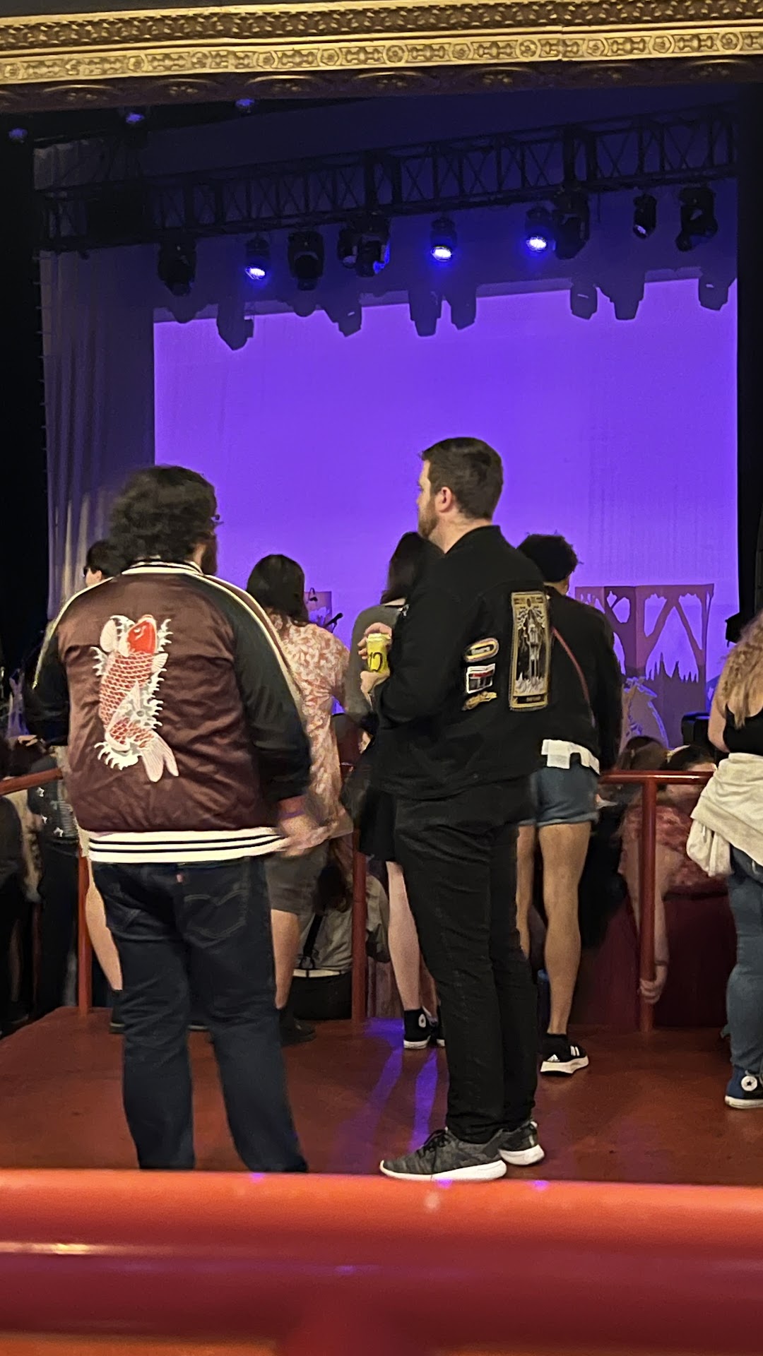 ALSO, before I forget, if you want artist merch and have a mobility aid that won’t let you do stairs, you better hope you have a friend or a kind stranger who will represent a place in line for you because the merch line is routed to go up the stairs for some reason??? It would be safer and easier and more accessible to put the table in the back of the auditorium, near the back of house bars where then people at least might be able to line up along the edge of the house and disabled folks don’t have to owe it to strangers to hold a place in line for them and wait at the bottom of the steps like a kicked dog.