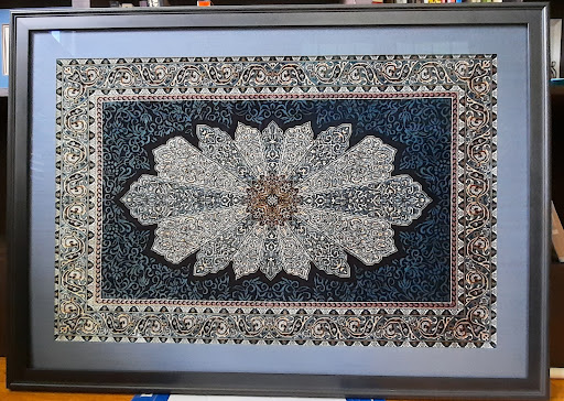 Read moreI recently got a 2'x3' handmade silk rug mounted and framed at the Fine Art Frameshop and I am very happy with the result. Russ quoted me a very reasonable price upfront. After it turned out that the piece itself wasn't square enough to fit a rectangular frame, Russ made a judgement call and included a fabric silk mat at no extra charge to me in order to offset some minor delays due to supply chain issues. The final product was a flawlessly mounted silk rug in a custom frame that sits under antireflective/UV-shielded glass--which can be hung in four different orientations... looks...