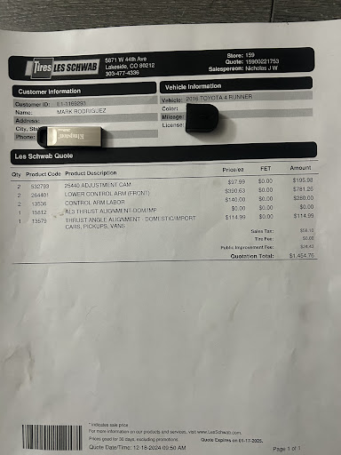Read moreAll of the employees I encountered at this location were nice, but the service and quality of tires were a nightmare to deal with. I decided to come here last year to get brand new tires for about $1000. It's ~30 minute drive from my house, but I trusted the brand and reviews so came here. Within the week, one tire was flat so I took it back- they couldn't find anything wrong with it and fixed it for free, so I figured it was a fluke. However, a month later a different tire had gone flat, and again they couldn't find an external puncture- I went in and they couldn't fix it, so they asked me to drive for three weeks on the spare until they got a new one to replace it with. I ended up being out of town for a few weeks during this so I was OK with it. When I got back, ANOTHER tire was flat (with no discernable cause, and hadn't been driven on since it was full)- since I only had one spare, I had to call a tow truck. Once there, they fixed the flat, but left the spare on despite earlier saying they'd replace it when I next came in. I stupidly didn't double check before I got home. So the next day, I had to take a few hours out of my day to again drive far out of my way to this location and get it replaced. I asked about the possibility of a partial refund for all of the extra time I had to spend because of the faulty tires, but was refused. For the price and hassle of the tires, I wish I'd...