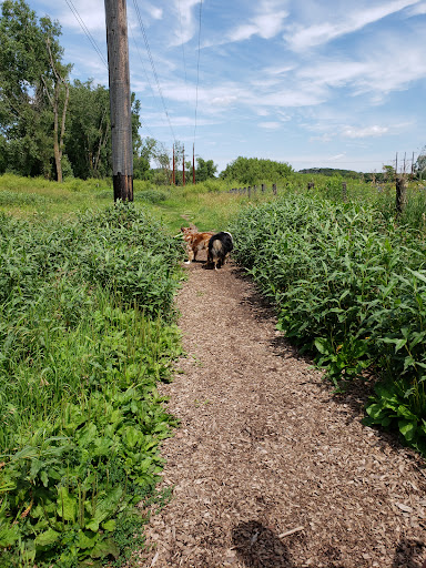 A quick drive from anywhere in Lakeville and positioned right next to the freeway. It's a small, fenced dog park with a section just for small breed dogs, as well. The paths were not mowed but beaten down just by foot traffic. Some of the paths had mulch over the path but it was mostly soggy and muddy in those areas. (We have had a Lot of rain lately) the water trough is located outside the fenced in dog area so to fill water bowls (which have been left by previous visitors) you have to exit and come back in. Because no area is mowed there isn't any large open areas to throw a ball long distance. There is also no swimming area or pond for the dogs to cool off which is a bummer since the park itself is so close to the lake. Overall an ok park to take the dogs to run...