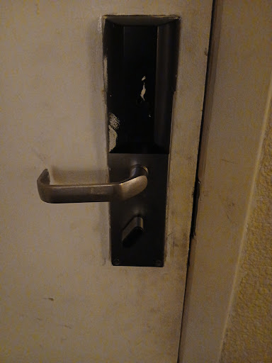 The lock on the door is busted, and the window is boarded shut with thin ply wood, allowing cold winter air to sneak inside. Walls are in desperate need of scrubbing, and the furniture is outdated, graffiti engraved into the wood. Zero chairs at the table or anywhere in the room for sitting. The bed has completely caved, sinking to the ground. Dresser drawers do not open/close on demand, needing to address much needed force to use. Awful DIY patch job on the door. Vent covers are dangling off the ceiling about to fall from all the dirt + dust weighing it down, huge safety hazard, alongside with the ancient smoke detector not working, which is also ancient. Old appliances are used as decorations for the hallways/walkways that welcome you to your room before entering! High crime area, located on Colfax. Known for its high homeless rate, prositution, drug-dealing, and retail & auto theft!
