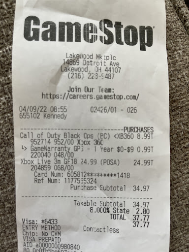 Ā Ā Ā Read moreI went in to get Donkey Kong bananza and it was $80, I know not of taxes so I assumed it was all well and good. When I was leaving I checked the receipt to see if it was taxes and the employee added on a warranty which I did not ask for. I went back in to get my money back for that and my exact words were āhey sorry, I didnāt ask for a warranty can I get my money backā, he starts the process for a refund and while heās doing that he tells me that I shouldnāt come back to this game stop, I chuckle and ask whyās that and he tells me that I have attitude, I ask what attitude and he says Iām showing attitude right now. I tell him that he charged me for something I didnāt ask for and Iām gonna ask to get my money back for it. Long story short, the employee Hussein sucks and would fit much better being a sleazy used cars salesman and I will be taking my business ...