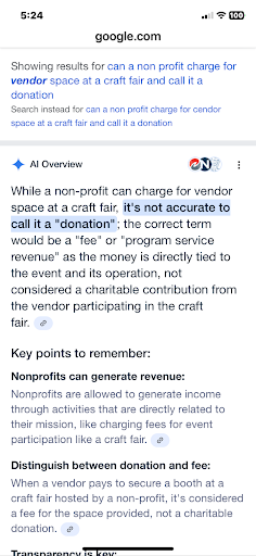 I paid $35 for a booth at their holiday craft show. When I paid I got an email with thank you for your donation. This was not a donation it was a fee I paid to be a vendor. When I arrived I was told I had to share a 5 foot table. That gives me 2.5 feet to display my work. I complained and these people are completely dysfunctional. When I tried to get a persons name to complain I’m being ignored so I am going to contact the Stare and the BBB. The way they are treating people other than their members is horrible. Some people should not run non profits because they think they own it. I asked to place my leather bags on my fur pelt. It’s a beautiful display. I was told no because it may offend people. Dah but the leather bags are the same without hair. I’m Native American and that kind of control is not acceptable. I file taxes and the fee I paid is part of my loss but, they send the receipt as a donation. It’s needs to look into this place. I’m regards to your response you can use whatever wording you would like. I was not treated with respect. You people knew I was struggling with cancer and medical issues and now I can see why your organization is struggling. I am doing another fair and would like my money back. Kindly refund me. I would never participate with your non profit again because no matter what you say you should treat people as a business. Again, it was not a donation the money was for the space. I was told I was to take a 2.5 square foot area. If you had planned this out correctly you could have had enough space for the vendors. I have done craft shows for many years and your way of doing them is dysfunctional. I will wait to see if you are going to refund my vendor fee and if not, I will follow up elsewhere. And regarding my tone? I was very respectful trust me. I simply stated facts. You people are a bunch of gossiping old bitties . Now that is...