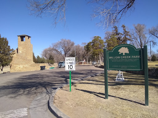 Off the highway in southern Colorado, park built as a WPA project along the water. There was a disc golf course, a skatepark, a playground for kids and a little tower to climb dedicated to Zubulon Pike, plus open trails on either side of the creek. Great spot to drive through, as a road goes through the entire park as well as adjacent streets running on both sides, or walk around and stretch for a while!