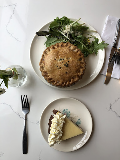 Honestly can’t say the last time I was BLOWN AWAY by the food at a cafe like this. Been here twice so far and everything I have eaten has been a delight! The staff is equally as delightful and will welcome you with the biggest smile and really helpful descriptions of what pies are available. Also, can’t forget the fresh flowers they have on the tables every day. Highly highly recommend the mushroom and gruyere tart, my husband and I split it along with each getting a hand pie. Quiches are also so flavorful and the best crust around. Amazing little spot to grab breakfast or lunch if you are looking for the sweet and savory combo. Going to make it my mission to become a regular here 🤩