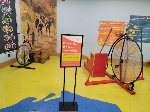 I read in a Lansing visitor's guide the Michigan History Center is listed on the top five activities for kids, although as an adult, I can say I enjoyed the museum as well. The museum is three floors and has interactive displays from riding a big wheel bicycle to walking through a coal mine to a classroom setup to walk through to read and hear about individuals' lives and perspectives. The museum is 8$ for adults (the website says Sunday is free admission). Michigan is rich with history from brands we still recognize today in so many industries, from cereal to music to automobiles; the museum encompasses a lot of information. The visitor entrance is on the ground level, instead of walking up the stairs, which looks like the more obvious way to enter, you go down the stairs. As an added bonus, the trees leading up to the entrance give off a pleasant smell. Free 2 hr parking is available just off the Allegan and Butler...