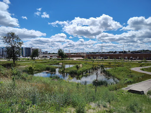 What a lovely addition to the Frandor area and a win for the environment. The water is stormwater runoff, which is filtered through the ponds before it hits the river. I love what they've done here. They've turned a boring field (that's been nothing, forever) and turned it into what feels like a little nature preserve. The waterfall is lovely, there are ducks and tons of native flowers that have been put in. There are pathways to have a stroll. I can't wait until the new trees have a full canopy and the wildflowers take over. I took a hike up the big hill (Frandor Mountain I call it) and that's my new spot for sunsets over the city. Great job here on whomever design and approved...