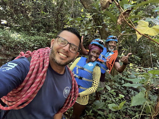 Gabriel was our guide. He was polite, very personable and has a beautiful family. Contact him to stay at his Airbnb in 2026 (currently under construction) or to stay at his hotel which is currently available. I would say this was of 5/10 on intensity compared to el yunque's paved trail- being a 7/10. However I may not be the best judge of intensity if our guide thought I was 28, when I'm not in my 20s or 30s. NOTE: There is absolutely no trail. 75% of the entire trip is through jungle/woods/rainforest. Wear sneakers or very supportive water shoes if you plan to jump into water. We went in November and luckily it hadn't rained 3 or 4 days prior-Idk what that would have been like-im guessing not good. Weather was very temperate and comfortable. If I went back to PR with others I would tell them to make this trip Gabriel & Jimmy. We only saw 7 caves but there's...