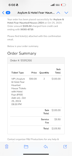 SECONDLY, I attached my receipt since you felt so offended we said another haunt was better! And they were way busier than you, so there’s zero excuse for your lack of a haunt experience!