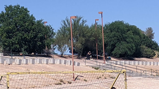 One of the worst I've ever experienced as a handicapped person. The sidewalk zig zags across two soccer fields back and forth and an incline that is ridiculous rocks and sand covered it so that was an added bonus. Anyone who is able-bodied had to just go down a couple set of stairs boom boom boom okay but a handicap person had to go downhill and forget about going back up My son-in-law had to bring the car down on a road that was used for bringing in soccer equipment which happened to be unlocked at the time he had to come get me after the game cuz there was no way I could walk back up the so-called handicap ramp ridiculous My legs and ankles were so sore for 3 days I was using a walker. This has to be the worst excuse of a handicapped ramp that I have ever experienced in my life I've been handicapped for 12 years...