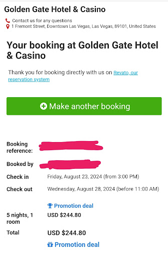 These are reviews for 3 different stays. Stayed here again this time in a suite for my birthday. It was spacious and quiet. I liked the design except for the see thru bathroom door. It is clouded glass, but yet sound effects and smells can potentially carry out in the main area. This is my most recent stay June 2023. The suite has a nice walk in shower, a bar area, that doubles for storage. Coffee maker, fridge, comfortable bed and sitting area. That the Golden Gate does not have restaurants anymore is not an issue for me as there are so many choices in easy walking distance. This time I came as a couple stay and we took advantage of stadium swim 2x. If you are looking for quiet and space I recommend the suites. It was VERY Affordable. I also received a $25 food credit for my birthday. Thank you. **************** Well i stayed here about 4 to 5 times and small hickups but usually enjoyable. I'm altering my previous 3 stars to 4 stars. I got a more quiet room and requested additional pillows which were brought. ***************** Previously i checked in on Monday (end of February) there was a guy at the desk livid about the noise level. I was thinking oh boy. I asked for a quiet room. I understand its fremont street. I understand that the Golden Gate is a historical hotel. However at the end of the day people get hotel rooms to sleep. Normal sleep hours are 10 pm to 8 am. I was in room 340. The windows were treated where you can not see out but the dancing lights and noise level makes me think i was right by the stage. The stage stays active until somewhere between 1 to 3 am. I was also not impressed that there were only 2 small pillows on the bed, maid service did not come and thevwater temperature could only be adjusted thru to faucet. Each time i tried to shower scorching hot water would come thru no matter which knob you turned. I checked out at 5 am Wednesday and the clerk seemed lazy and unprofessional. Wanted to see my id to check out? Had to be probed for receipt. Advised i would not get checked until 11 am. I received the text from Golden Gate to check out at 10 30 am. However he did manage to deactivate my parking pass which caused frustration trying to exit the parking lot. I do like the vintage machines and drink service at the casino.