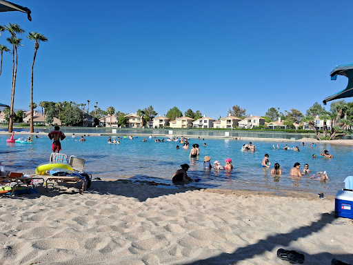 The lake also has a beach 🏖️ / beach pool that looks like a lagoon. It's surrounded by a beautiful park with picnic areas and covered BBQ areas. It has volleyball courts and other places to play games.