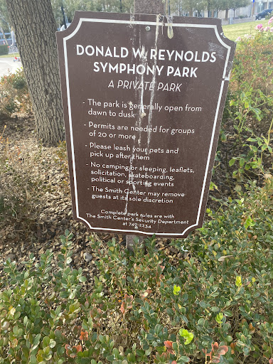 I LOVE this park!!!! I have been a Broadway Las Vegas season ticket holder from Day 1. Most people rush into Reynolds Hall to see the show and then rush out to get home. I, instead, like to let the performance marinate in my mind in the idyllic setting of Donald W. Reynolds Symphony Park. After I've had enough of gorgeous mother nature, I get in my car and enjoy the unfrenzied ride home. There are plenty of benches for a meditative moment. Symphony Park is a 1.9 acre rectangle next to the Smith Center. It's a surprisingly quiet, green oasis in the midst of mass activity. People rent the park for events, so you might come across a stage with lights and table-cloth-covered tables for private parties. The Smith Center says you can seat 1,200 there. But to me this is an intimate space. I've been to Zumba festivals at the park back in the day. And I saw Teller's version of "The Tempest" in a tent here. (Awesome.) But the park is best when it's just a park. Sculptures dot the park. There's also a statue of Don hisself. I love the signature colored spikes that pierce of azure-blue Las Vegas Sky. Most ticket-holders going to events at the Smith Center ignore this magnificent green spot. Do spend a moment the next time...