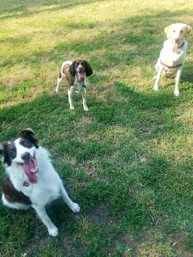 We are so thankful for this space! It's a great place to let your dog be a dog! You can walk the trails or hang out in the common play area that has a shelter with picnic tables and benches. There is a huge fenced in area for smaller dogs or dogs who might be getting used to off leash. (Or are easily distracted and you don't want to chase them to Topeka) A porta potty is available there too. There is a water faucet for dog drinks and you can wash off your dog if you need to. Toddler pools are often there for dogs to cool off in too.