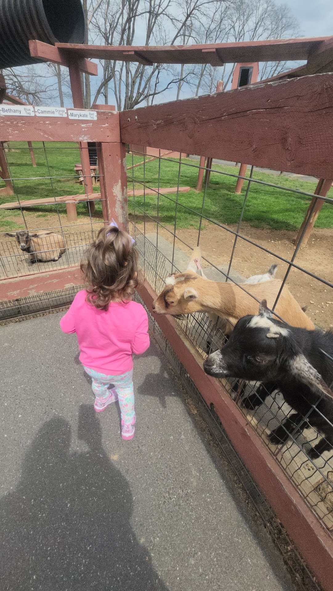 I had visited the petting zoo while in town to visit the Sight & Sound theatre and a quick tour of the local area turned into watching the time drift away while feeding goats and watching them interact with my family.