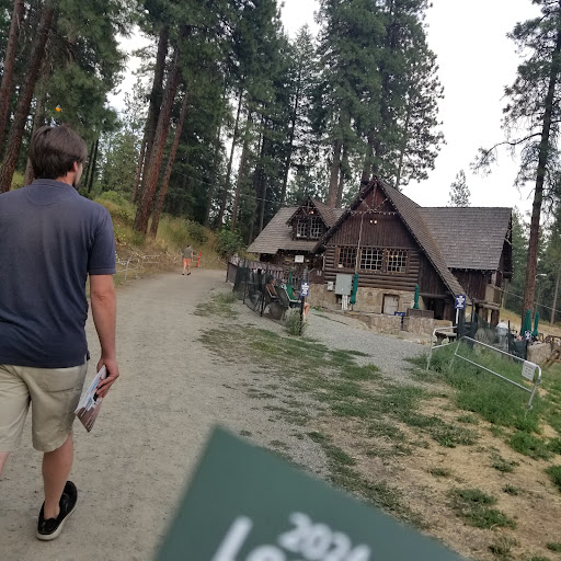 There is free parking in the field. A free shuttle is offered to anyone who does not want to walk up the hill to the theater. It leaves you off by the Porta Potties, then there is another little hill leading up to the seats. The walk up actually was not too bad. I stopped once by the lodge to take in the view and then continued.