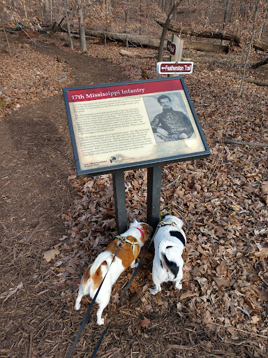 This park has a lot of history and trails. I hiked the Interpretative Trail what was somewhat well marked. It took me through the main section of the park, and it has a lot of sign telling the history of the battlefield. I walked passed 3 cannons and the cemetery. There are a lot of trails, all named, but the trail map only captures the color of the trails. Wish there was a more detailed hiking map. Some trails appeared to be very well kept, probably because they have more hikers. There was a gentleman at the entrance in the parking area sharing stories of the battlefield and he is the person to take to if you have questions or want to know about future events. There is a portable potty in the parking lot. I would come back again. The park is very clean but be sure to spray yourself with bug spray. I had some organic bug spray with no deet and I still got...