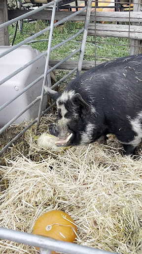 This year, there's no cost to get in, they just ask that you buy a pumpkin. Pumpkins are a little more expensive than you would pay somewhere like Walmart, but you're getting local pumpkins and there's a huge variety in selection (more than you'll get at a chain store). And for a couple dollars more, you also get to play in a corn pit with slides, play with the cats, and pet the animals in the petting zoo (My girls loved the pigs this year).
