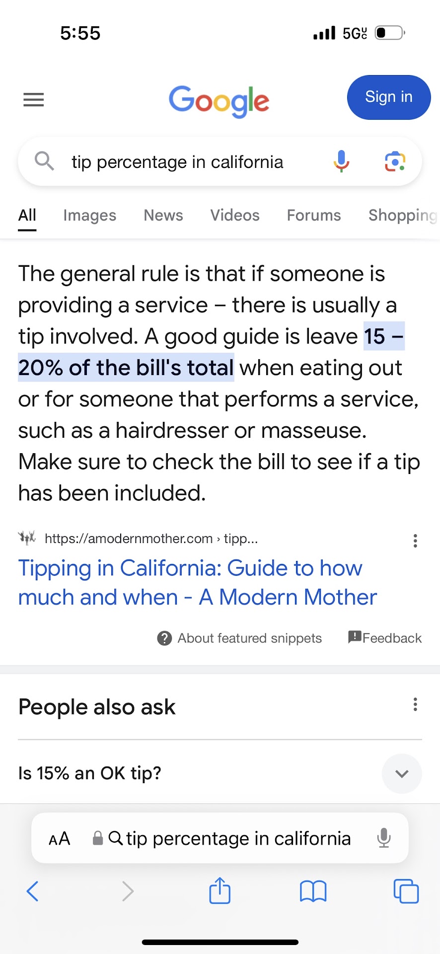 Read moreAll I’m gonna say is Wish I would of read the reviews first before I went cuz I experienced same problems some others experienced , I went because I didn’t need a appointment and they could get me in right away , now I know why it was so easy to get in …….one thing was my 20 percent tip was frowned upon which I added before the service started because they demanded you pay first and a comment was made and basically was begged to give more of a tip I’ve attached a picture of google search of percentage just in case there is any misunderstanding of how much tip is suggested and a tip shouldn’t...