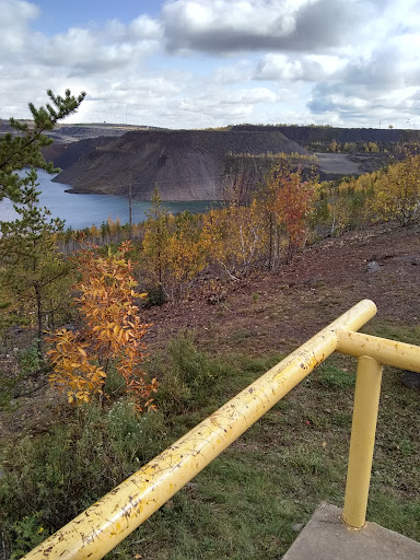Very pretty overlook! Simple easy overlook to drive in. Graded dirt road that drives in a long loop. Some unique flowers and trees. The overlook itself has a cement place to stand with a yellow bar that protects you from falling on 3 sides. Lots of old mine to look at. There is water at the bottom of it that has turned into a small lake. We saw a Bald Eagle and a hawk flying above us! There are some smaller hills on the drive, but not treacherous to drive on. Very pretty view in the fall! There was a sign talking about the recreation area that the mine has turned into now. A nice stop to be sure...