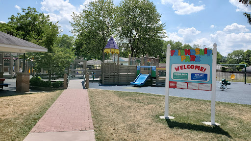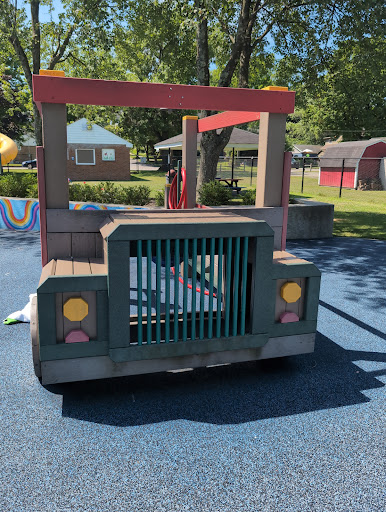 My kids love this playground. It actually has two areas, which kind of blend into one another, for kids of different age groups. All of the boards/planks are composite, minus the footers, so no splinters. The ground of the entire place is thick recycled rubber, so it is quite a cushion if one were to fall. Plus, there is a pavilion to sit and have a nice picnic. We try to stop here anytime we go to Greensburg...