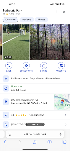 Read moreVery large park in Gwinnett County. There are several different areas to this park. When you drive in the main entrance you will see a sign for the senior center. Although it was closed when I went on Sunday, it looked very big.