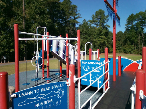 This is a smaller playground, but it is one of the cleanest I've ever been to! It is hidden from the road so there is not a lot of noise, there are a few walking trails that will even take you to the river! The bathrooms and picnic areas are always clean, and ready...