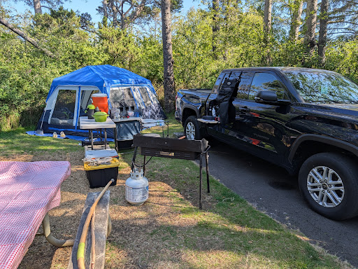 The grounds are very well maintained, the park staff is friendly, and the location is as private as you can get for being within city limits We figured it would be noisy being so close to 101, but it was very tranquil! Being within walking distance of both the lake and the ocean were big plusses. The facilities (showers, bathrooms, campsites) were spotless, and there was easy access to potable water, firewood, garbage collection, etc. One thing that stood out was there was almost NO bugs! Figured being so close to the lake, mosquitoes would be a problem, but nope! Didn't even have to break out bug spray or citronella candles this trip, which was unusual (very welcome!)