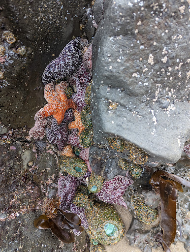 First off the actual park (where you park your car) is beautiful. It's in the woods. There is a creek running through it with multiple bridges. I actually saw a couple taking their engagement photos on one of the bridges. You walk under the main road. 101, Then there is the beach. It's so beautiful. Absolutely one of the most amazing tide pool spots I have ever been to. Thousands of starfish, sea anemones, urchins, and so much more. There actually were not as many people there as some of the other beaches. Which was really nice. The beach itself was clean. I saw people with little bonfires. The cliffs behind you (away from the ocean) are breathtaking. Huge with water coming down in some spots. My family and I were there for about 4 to 5 hours while the tide was going out. One bad thing is there was no running water in the park to wash yourself off. There is a spigot,but no water comes out. There are public restrooms. No showers that I saw. I would 100% recommend going...