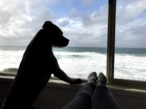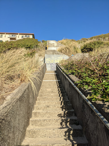 Sandwiched between buildings belonging to the Seahorse Hotel, this overlook and beach access point has beautiful views. They're even better if you go part way down the long, steep staircase so you can take in the view without the large buildings blocking half of the view. It's nice that there is a bench at the top of the access, because it's a long, arduous, and painful walk up and down them if you have arthritis or some other mobility issue. There is no wheelchair ramp or elevator for wheelchair users. Then again, with the stairs terminating straight onto the sand, such niceities would be a useless and expensive endeavor unless the city ever decides to build a deck large enough to accommodate wheelchairs, walkers, and perhaps a bench. The sand at the bottom of the stairs is soft and deep. Great exercise walking through it, but miserable for arthritics, and just plain impossible for wheelchair and walker users. Thankfully there is a drive down access a few blocks south of this access , enabling anyone with a clue about driving in sometimes deep sand to get straight onto the beach and enjoy it while walking on the beach and exploring the tide pools at low tide, or merely sitting in the comfort of your own vehicle. While I enjoy the view from the Oceanlake access point, I can only enjoy it from the top, as my arthritic knee and hip make taking the stairs onto the beach extremely painful, and functionally impossible. I'll stick to other access points if I actually want to walk...