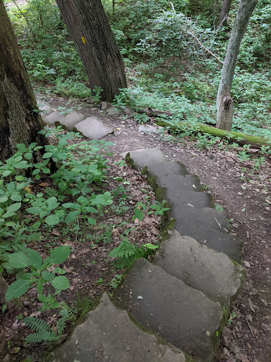 Read moreWe started at trailhead #2 at the end of Calhoun Rd. There's a small gravel lot with room for 5 or 6 cars. The trail starts with a fork, we followed the blue trail on the right. It winds down a hill for a very long time (which was challenging to get back up). At the bottom is the stone staircase. Cross the small creek area. Right takes you to the old pipe making ruins. Just past the ruins along the wall is a fun and creepy tunnel that leads to the river. Back the other direction is more semi flat trail and a creek, which is basically dry in the summer, but I assume would be somewhat challenging to pass in the winter. If you have dogs be careful, there is broke glass all along the trail and...