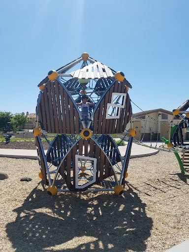 This park is shaped in a circle almost where the main play features are located. They have one main slide and a bunch of eccentric features. The coolest one is the zip line, how every it should be noted thsts more the bigger kids. My kid is a swing guy and there are two sets swings and net swing. Overall this park where you could keep an adolescent entertained. Theres is a huge field for soccer and the bathrooms are clean ☝️. Basketball courts too, lastly like a lot of this parks a ton of sun so bring...