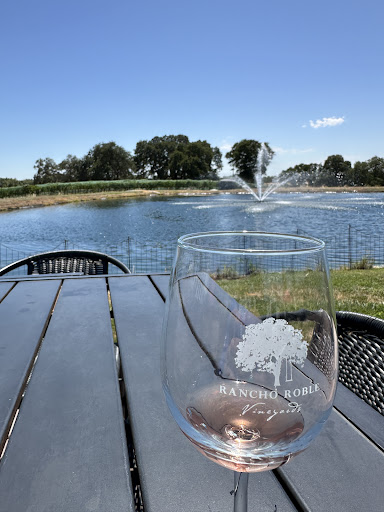 Ā Ā Ā Read moreRancho Roble Vineyards had been suggested to us as one of the best wineries in the Loomis/Lincoln area. Although we arrived about a half hour before closing, you would never guess it because we were greeted kindly and no one made us feel rushed to leave like some wineries do. From the time I called to ask whether they could accommodate our tasting, to approaching Rock on our entrance to the tasting bar, we knew we had made the right decision to visit. Rancho Roble Vineyards resonates with a genuine feeling of belonging and a place where good times are had by all. We ended up splitting a flight and tasted four unique wines -- Chardonnay, Rose, Barbera and a great red blend of Mourvedre, Syrah and Petite Syrah. I feel like we have tasted our share of wine over the years and know the difference between bad and good wine. We both can honestly say Rancho Roble's wines are excellent! And their lovely grounds are sprinkled with lots of grass for families, dogs, and kids with umbrellaed tables for picnics and gatherings. Adding to the atmosphere were angel statues and flowers, and of course a gorgeous pond in the distance. At the end of our tasting, we were lucky to meet one of the owners, Kari, who finished our visit with fun and engaging conversation, as did Rock. It is a given that we will return again in the near future. Whether you are locals or from out of town, you should take our lead and head out to Rancho Roble Vineyards for some truly awesome wine and a memorable wine...