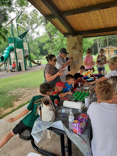 Very nice park with restrooms, play ground, splash pad, picnic tables, pavilion, dog park, pond and a nice lighted concrete walking trail.