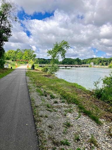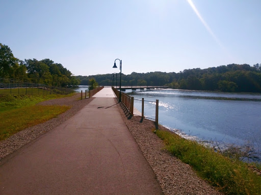Excellent path for biking or walking. Wheelchair accessible. Bridge that connects little chute and kaukauna is plenty wide enough for bikers and walkers to pass through safely. Bridge also has benches for relaxing or fishing off the bridge. The path goes past the dams in little chute and wooded areas as well. At times there is an abundance of geese on the pathway...