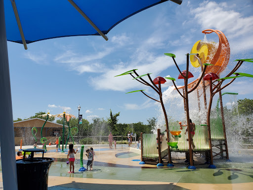 Really great brand-new spash pad. Very modern sprayers that are fun for kids of all ages, and some covered seating (they have signs up that they're adding more shade coverage soon as well). A large rotating bucket dumps every couple minutes in the center. There are a lot of small sprayers along the sides that are great for toddlers too.